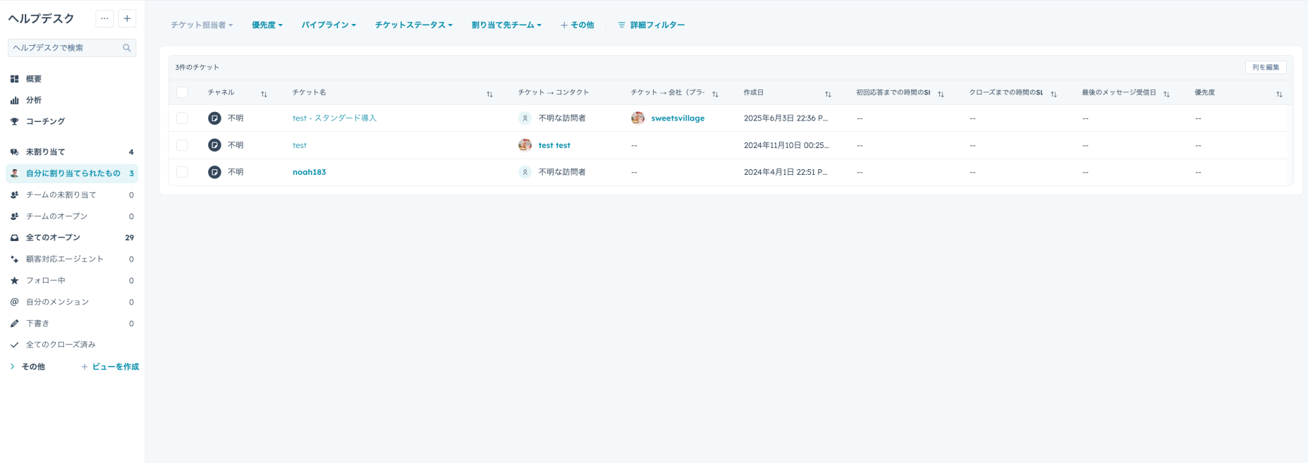 The Inquiry Management feature is a system for systematically organizing customer requests and issues and centrally grasping their progress. While the previously mentioned "HubSpot Customer Portal" serves as the window for customers to check progress themselves, this inquiry management feature is utilized by the customer service team to manage the status internally and grasp the overall picture.For example, when questions are received from multiple customers simultaneously, assigning a unique ticket to each allows for the clarification of priorities. Furthermore, it is possible to immediately and visually grasp the current status of each inquiry (e.g., in progress, unaddressed) and which representative is handling it. This feature contributes to preventing response omissions or delays and minimizing customer dissatisfaction. Since the history of inquiry responses is also saved, past cases can be quickly referenced, improving the speed of problem-solving. It is an indispensable feature for aiming at efficient issue resolution and improved customer satisfaction.